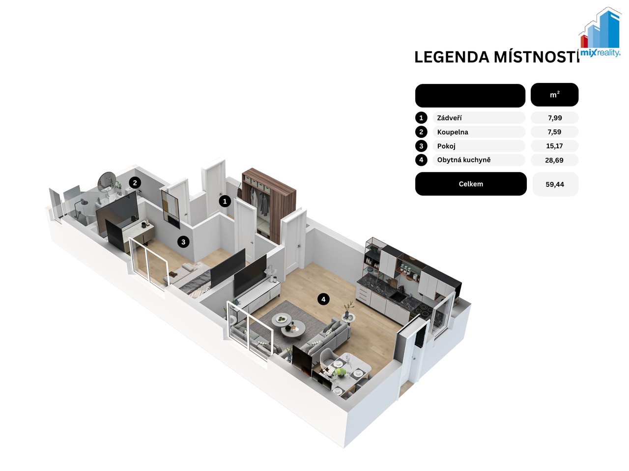Hledáte skvělou investici, anebo nové bydlení? Naše realitní společnost Vám exkluzivně nabízí ke koupi bytovou jednotku o dispozici 2+kk s balkónem v novostavbě moderního bytového domu, který se nachází v centru obce Chotěšov, na ulici Plzeňská. Bytová jednotka o celkové výměře 59,44 m2 bude situována v 1. nadzemním podlaží cihlového domu. Projekt se aktuálně nachází ve fázi výstavby, což Vám stále umožňuje částečně ovlivnit finální podobu interiéru dle Vašich představ. Dispozice bytu zahrnuje vstupní předsíň, obývací pokoj s kuchyňským koutem a vstupem na balkón, ložnici, koupelnu s možností sprchového koutu či vany a samostatnou toaletu. K bytu náleží parkovací stání a podíl na příjezdové komunikaci. Komfort bydlení zajistí podlahové vytápění s individuální regulací pomocí termostatů, ohřev vody bude řešen elektrickým bojlerem. Samozřejmostí jsou plastová okna s trojskly, kvalitní podlahové krytiny a moderní sanitární vybavení. Obec Chotěšov nabízí kompletní občanskou vybavenost včetně školy, školky (cca 5 minut chůze), obchodů a dalších služeb. Výhodou je také velmi dobrá dopravní dostupnost díky autobusové i vlakové dopravě. V případě zájmu Vám rádi pomůžeme s vyřízením hypotečního úvěru a zajistíme kompletní servis spojený s koupí nemovitosti. Vřele doporučujeme osobní konzultaci. Kolaudace bytového domu je plánována nejpozději na druhou polovinu roku 2027.