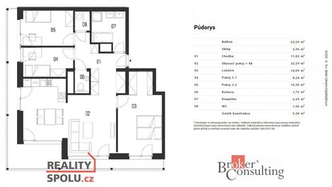 Prodej bytu 4+kk 88 m2 s balkonem 5,6 m2