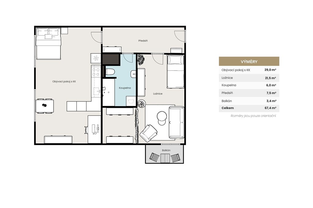 Nabízíme ke koupi světlý a velmi příjemný byt 2+kk o podlahové ploše 67,4 m2 s balkonem, který se nachází v moderním bytovém domě z roku 2019 v klidné části Plzně, ulice Poděbradova. Byt působí klidně, čistě a vzdušně hned při vstupu. Dispozice je praktická a přirozená, takže se v něm dobře bydlí - ať už hledáte vlastní domov, nebo byt jako investici. Orientace bytu je severozápadní, díky čemuž je zde během dne dostatek světla a v bytě panuje příjemné klima po celý rok. Obývací pokoj s kuchyňským koutem nabízí dostatek prostoru pro každodenní život i posezení s přáteli. Kuchyň je vybavena kuchyňskou linkou se zabudovanou troubou, sklokeramickou varnou deskou a digestoří s odtahem. U dřezu je instalovaný kvalitní vodní filtr eSpring. Vybavení bytu je na dohodě. V obytných místnostech jsou plovoucí podlahy, doplněné dlažbou v ostatních částech bytu, což je praktické řešení z hlediska údržby. Velkou výhodou bytu je prostorná samostatná šatna, která výrazně zvyšuje komfort bydlení a řeší úložné prostory bez nutnosti dalších skříní v místnostech. Zůstává zde kompletní modulární konstrukce IKEA, kterou lze upravit podle vlastních potřeb. Vybavení předsíně (komoda) je možné ponechat po dohodě. Součástí bytu je také balkon o velikosti 3,4 m2, ideální pro ranní kávu, krátký odpočinek po práci nebo klidné posezení. Vytápění bytu je řešeno radiátory. Samozřejmostí je optický internet, aktuálně využívaný od O2. Vstup do domu i přízemí jsou zabezpečeny kamerovým systémem, což přispívá k pocitu bezpečí a klidu. Parkování je možné v okolních ulicích v rámci zón, případně u nedalekého autobusového nádraží. Vedle domu se navíc nachází soukromé parkoviště, kde se poměrně často objevují možnosti pronájmu parkovacího stání. Dům je moderní a dobře udržovaný a splňuje energetickou třídu PENB A, což znamená velmi úsporný provoz. Tento parametr je navíc bankami vnímán pozitivně a může přispět k výhodnějším podmínkám financování. Lokalita nabízí příjemnou kombinaci klidu a městského života. V docházkové vzdálenosti se nachází centrum města, OC Plaza, autobusové nádraží, obchody, služby i kultura. Výhodou novostavby jsou také nízké provozní náklady a nízký fond oprav. Dispozice a výměry bytu: Obývací pokoj s kuchyňským koutem: 28,0 m2 Ložnice: 20,5 m2 Koupelna: 5,9 m2 Předsíň: 7,5 m2 Balkon: 3,4 m2 Celkem: 67,4 m2 Pokud hledáte byt, kde se dá komfortně a pohodově bydlet, rádi vás nemovitostí osobně provedeme. V případě potřeby vám navíc rádi pomůžeme i se zajištěním financování, aby pro vás byla koupě co nejjednodušší.