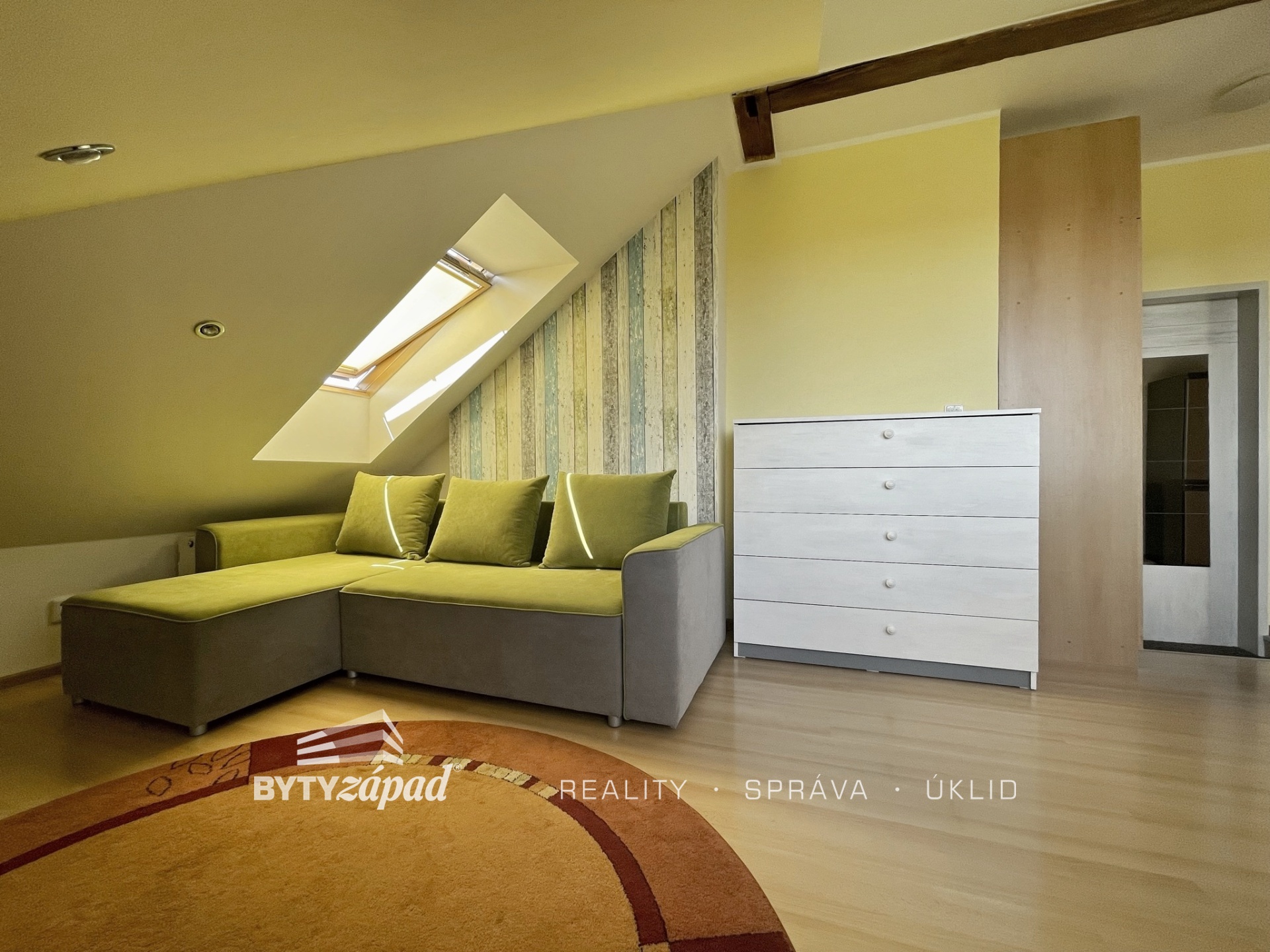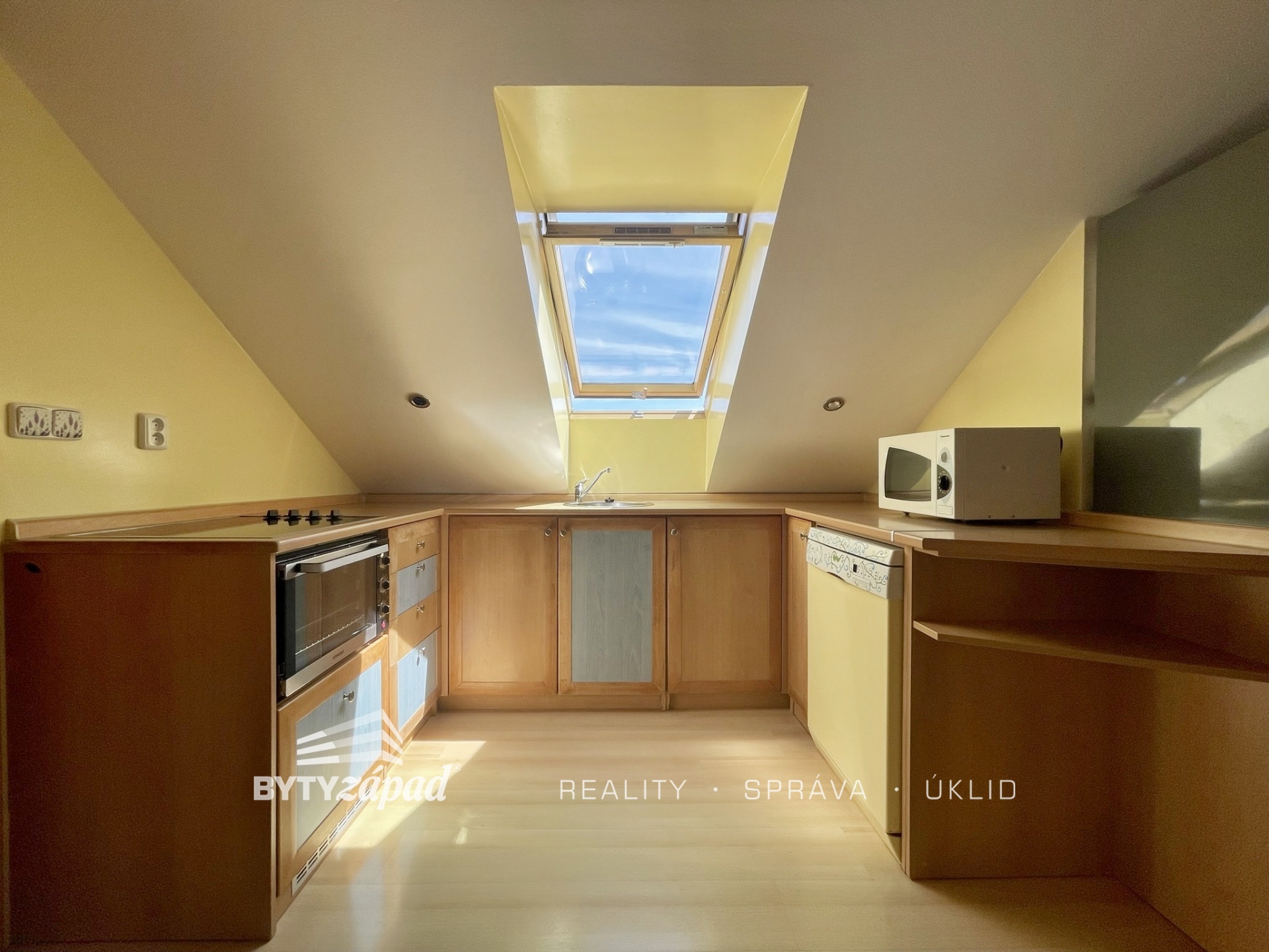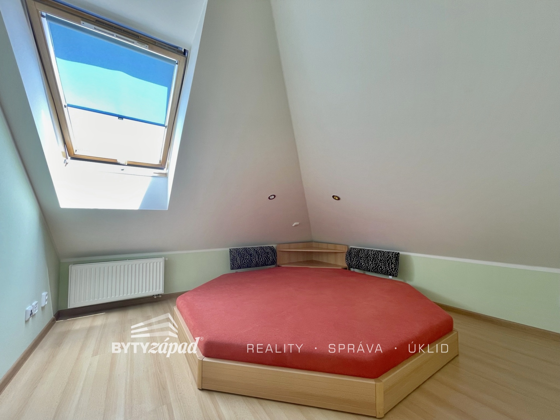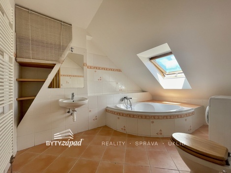 Naše společnost nabízí pronájem bytu o dispozici 2+kk nacházející se v Plzni na Slovanech na Francouzské třídě. Bytová jednotka o přibližné výměře 48 m2 je situovaná do 6.NP cihlového bytového domu s výtahem. Jedná se o podkrovní byt orientovaný na jihovýchodní stranu. Byt tvoří obývací pokoj s jídelní částí, skříněmi na míru a dispozičně oddělenou kuchyní, dále je zde prostorná koupelna s rohovou vanou a ložnice. Vytápění zajišťuje kombinovaný plynový kotel. Měsíční nájemné činí 14.500,- Kč + zúčtovatelné zálohy na služby (vytápění, voda, svoz odpadu a společná elektřina). Vyžadována kauce dva nájmy a odměna realitní kanceláře. Doporučujeme pro vynikající lokalitu plzeňské městské části Slovany vyznačující se výbornou dopravní obslužností a občanskou vybaveností. K dispozici dle domluvy. Pro více informací či domluvení prohlídky volejte makléře.